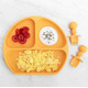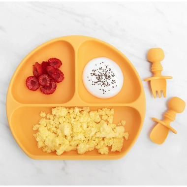Bumkins Silicone Grip Dish is perfect for little ones learning to self-feed. This divided plate is perfectly sized for toddler portions. A strong suction base ensures the dish stays put – even with the most aggressive toddler! Great for use on highchair trays or tables. A straight side allows kids to belly up to the plate, allowing less of a mess. Silicone can withstand low and high temperatures, easily transitioning from the refrigerator or freezer to the oven or microwave. Made with 100% food-safe silicone that’s durable, stain and bacteria resistant.