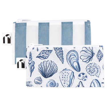 The better alternative to single-use plastic bags, Bumkins' reusable Shells and Nautical Stripe print snack bags are made from the same easy-wipe waterproof and stain-resistant fabric as Bumkins' SuperBib. A smooth zipper closure doesn't hold crumbs and single-ply construction means no worrying about icky stuff growing between layers of fabric. Not just for food. Snack bags make excellent organizers for storage and travel! Stash inside your purse, diaper bag, or travel bag. Great for pacifiers, cosmetics, cash, electronics, and more.