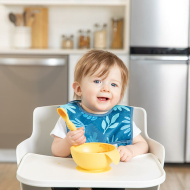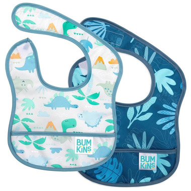 Perfect for baby's first foods, Bumkins Starter Bibs attach over the back of the shoulder with a hook-and-loop closure for a quick, adjustable, and tug-proof fit featuring a large catch-all pocket to help contain spills, crumbs and more. Starter Bibs are made from Bumkins' lightweight, durable, waterproof fabric that is resistant to stains and odors. The single-ply construction means no worrying about icky stuff growing between layers of fabric. Wipeable and machine washable, these bibs are easy to clean and a pack of two ensures you always have one handy!