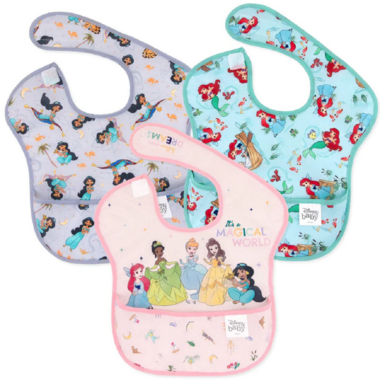 Keep your little princess sparkling clean with this set of three Superbibs featuring some of your favorite Disney Princesses.