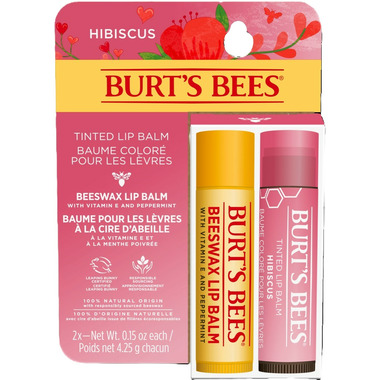Burt's Bees 100% Natural Origin Beeswax Lip Balm & Hibiscus Tinted Lip Balm