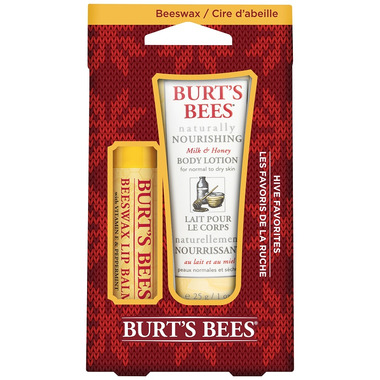 Burt's Bees Hive Favorites Beeswax is the perfect little set anyone would be thrilled to get as a gift. This small gift pack contains a tube of classic Beeswax Lip Balm and a tube of Milk and Honey Body Lotion, both made with hard working ingredients. The lip balm naturally helps condition lips with beneficial nutrients and a hint of peppermint oil that provides a one of kind refreshing tingle. The Milk and Honey Body Lotion blends milk, honey, coconut and grape seed oils to create a non greasy formula that quickly absorbs and conditions skin for up to 24 hours.