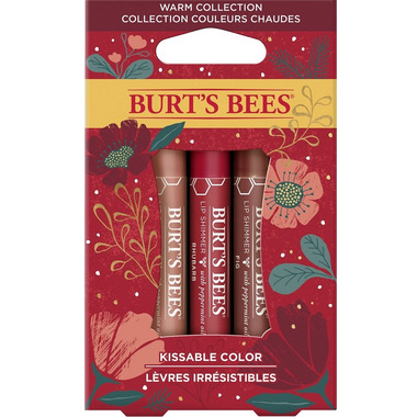- BURTS BEES GIFT SET: This gift set includes 3 Burt's Bees Lip Shimmers in Peony, Fig and Rhubarb that come in a deluxe giftable box making it the perfect gift for women for any occasion or a stocking stuffer during the holidays