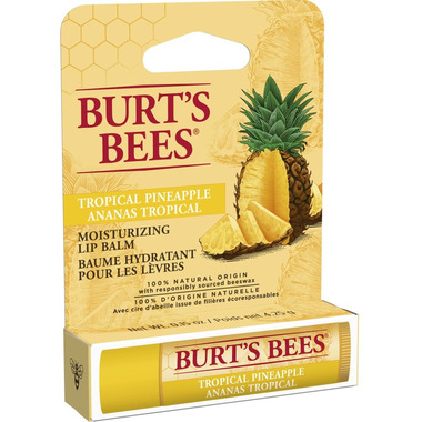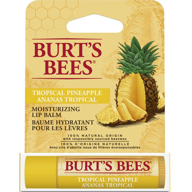 Keep your lips happy and hydrated with Beeswax, Shea Butter and Vitamin E. Burt's Bees Tropical Pineapple Beeswax Lip Balm is a hydrating, tint-free lip balm that treats your lips to silky smoothness anytime. Burt;s Bees Moisturizing Lip Balms nourish and make your lips feel luxurious. Infused with powerful fruit extracts and Beeswax to richly moisturize and soften lips, the nourishing oils and butters will make your lips feel happy and healthy. With a matte finish and moisturizing balm texture, this tint-free tube of soothing lip balm glides on smoothly to nourish dry lips while keeping them revitalized and hydrated. Conveniently tuck a tube into a pocket or purse, so that you can keep natural origin, nurturing lip care handy. This 100% natural origin beauty product is formulated without parabens, phthalates, petrolatum and SLS and will beautify and revitalize your lips. Use this natural origin Burt's Bees Moisturizing Lip Balm to make lips feel their best.