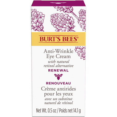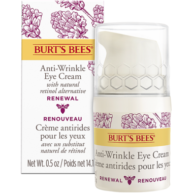 Renew and reverse the many signs of aging with Burt's Bees Renewal Anti-Wrinkle Eye Cream. Clinically shown to reduce the appearance of lines, wrinkles, under-eye circles, and crows feet for a renewed glow.