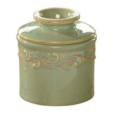 Holds up to one full stick (1/2 cup) of butter. Softened butter is packed firmly into the bell-shaped lid. Cold water is poured into the base of the crock. The lid is placed upside down back into the base of the crock. Soft, spreadable butter may be enjoyed and served right from the crock