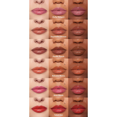 Glam up and get away with high-shine color and sunset inspired packaging. This formula is infused with a unique peptide complex and hyaluronic acid booster to help plump the look of lips and is spiked with an intoxicating tropical scent and tantalizing tingle.