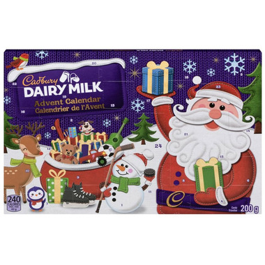 Count down the holidays with this Cadbury Dairy Milk Holiday Advent Calendar. Peek inside each door for a fun holiday trivia question and enjoy a fun-filled chocolatey treat.