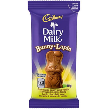 Chocolatey bunny with vanilla flavoured mousse filling. 170 calories per bunny.