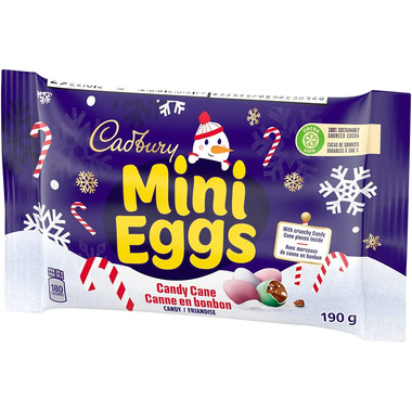 Chocolatey candy coated Cadbury mini eggs, with crunchy candy cane pieces inside.