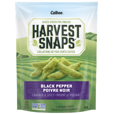 Ingredients: Green peas, Canola oil, Rice, Black pepper seasoning (maltodextrin, black pepper, salt, sugar, mushroom powder, onion powder, garlic powder, yeast extract, vinegar powder, natural flavours, citric acid), Calcium carbonate, Ascorbyl palmitate.