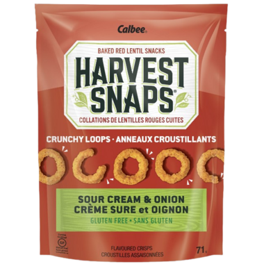 Red Lentils, Rice, Canola Oil, Sour Cream & Onion Seasoning (Salt, Whey, Tapioca Dextrose, Natural Flavour, Buttermilk Solids, Onion Powder, Sour Cream [Cream, Nonfat Milk, Cultures], Parsley, Yeast Extract, NonFat Dry Milk, Spice), Calcium Carbonate, Annatto Colour, Rosemary Extract (for freshness)