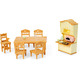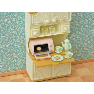 Includes: Kitchen Cabinet, Drawer x2, Toaster Oven, Toaster Oven Tray, Cookie x2, Plate, Pot, Lid, Cup x2, Saucer x2, Glass x2, Dining Table, Chair x4, Baby Chair (a total of 22 pieces)