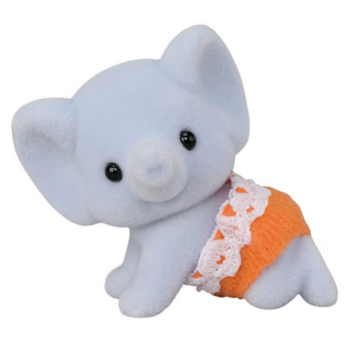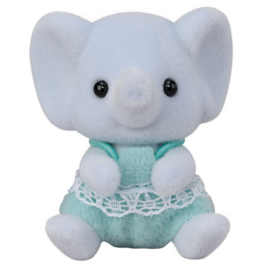 A figure set featuring the Elephant twins and a pushcart. The figures' heads can be moved. Either of the Elephant twins (Sitting or Crawling) can ride in the pushcart. The pushcarts of all the twin sets can be connected together. Introducing the Elephant twins, Ibis (Sitting) and Ritz (Crawling). Combine with other figures, houses, and furniture (each sold separately) for even more fun, imaginative playtime!