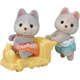 The Husky Twins set contains baby figures Amber (Sitting) and Jeremy (Crawling), along with a pushcart (Train).