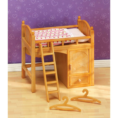 Perfect bed set for Critter girls! Includes bed, mattress/pillow, blanket, built-in cabinet with mirror, storage drawer, clothes hanging rod, 2 hangers, and moveable ladder.