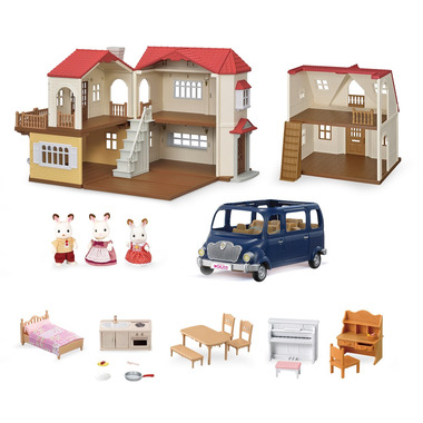 Calico Critters Red Roof Grand Mansion Gift Set is the ultimate Grand Mansion Gift Set that includes Hopscotch Rabbit Mother, Father and Daughter who are posable and dressed in removable clothing. Features 6 spacious rooms with kitchen and dining room furniture, single bed, desk, piano and Family Seven Seater Van. Ideal for Holiday or milestone gifting and inspires imaginative and role play.