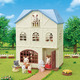 The Sky Blue Terrace Gift set dollhouse playset is a three floor home with a balcony to look out over Calico Village! The three-story home has moveable floorboards and ladders to create several unique home layouts. This set includes over 25 pieces to fill the home including two poseable Calico Critters figures, BubbleBrook Elephant mother and twin-size girl. Furniture and accessories for twin size girl nursery include bunk beds, play table with chairs, toys and more!