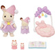 Bedtime is fun with this set that includes the Chocolate Rabbit girl and cradled baby with a baby gym and matching accessories.The adorable baby gym with a mobile will lull the cradled baby to sleep.The Chocolate Rabbit cradled baby has a special sleeping design with her eyes closed.The girl and cradled baby are wearing matching pajamas with night caps.The puppet can be placed on the girl's hand.