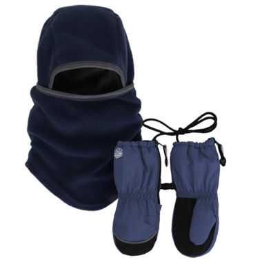 snug, fleece-lined balaclava with durable, waterproof mitts to provide