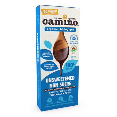 Camino Organic Unsweetened Sweet Baking Chocolate made with 100% cacao and grown by small scale farmers.
