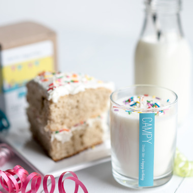 Happy Birthday! To you, to you friend! This Campy candle is a delicious blend of vanilla and cream, with sprinkles on top.