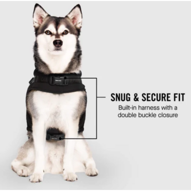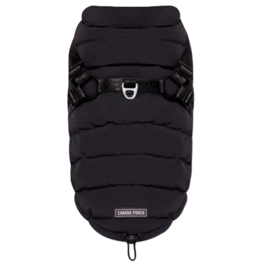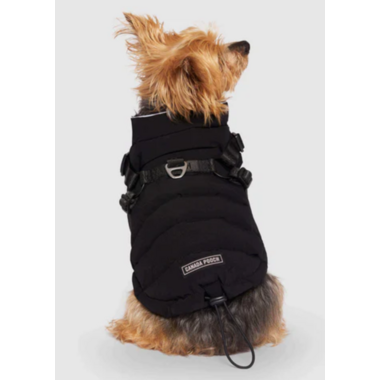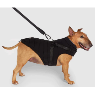 This 2-in-1 winter puffer with an externally connected harness is for seamless walks.