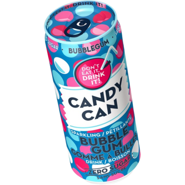 Candy Can Sparkling Bubble Gum Drink with Zero Sugar.