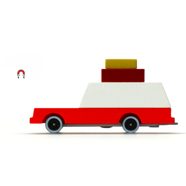 Pack your boxes we are moving across the country! This small but mighty wagon is sturdy enough for any road trip. Finished with a bright orange paint job and shining white wheels, its sure to get you there in style. Note the current batch of Wagons includes the magnetic hitch for the Candycar Trailers.