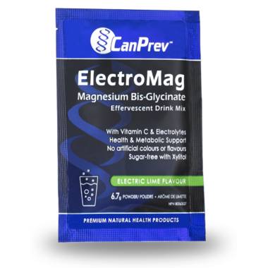 Recommended Dosage: ElectroMag™ is a tasty effervescent drink mix with 150mg of CanPrev’s highly absorbable proprietary magnesium and 375mg of Vitamin C in every serving. It is ideal for the maintenance of good health, helping with metabolism, wound healing, tissue repair, muscle function and strengthening bones, cartilage, teeth and gums.