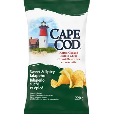Sweet & Spicy Jalapeno Chips start with the same hearty, satisfying crunch that Cape Cod chips are famous for. They add the fiery taste of jalapeno, then temper it with a bit of sweetness. So your palate experiences two distinct flavors in one exciting bite. If you like a kick of flavour with your snacking, they're definitely your bag.