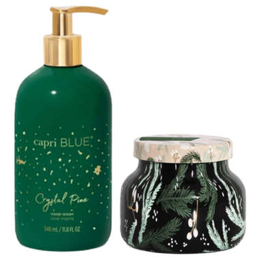Capri Blue Holiday Pattern Jar Candle & Hand Wash Crystal Pine Bundle