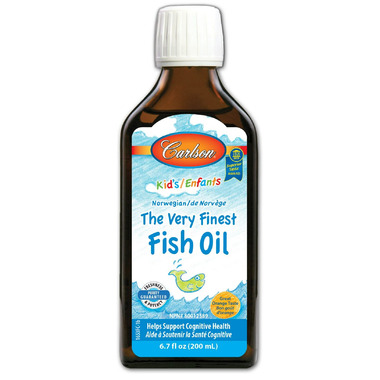 Carlson for Kids Very Finest Fish Oil has a great orange taste and contains 800 mg of omega-3's in each ½ teaspoonful. Carlson for Kids Very Finest Fish Oil comes from cold-water fish found in deep Norwegian waters and is bottled in Norway to ensure maximum freshness. It is vitamin A & D free. Recent medical studies have shown the importance of omega-3's for healthy brain development and vision in growing children.