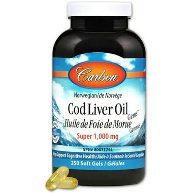 Cod Liver Oil Gems, Super 1,000 mg contain 1,000 mg of Norwegian cod liver oil per soft gel, providing the important omega-3s EPA and DHA, which support heart, brain, vision, and joint health. It also offers 2,000 IU (600 mcg RAE) of vitamin A and 400 IU (10 mcg) of vitamin D3. To ensure maximum freshness, Cod Liver Oil, Super 1,000 mg is closely managed from sea to store.