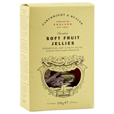 Cartwright & Butler soft fruit jellies are made with all of nature's succulent flavours in mind. These scrumptious, soft, and fruity jellies are delicately dusted with sugar granules. They truly deserve their classic status amongst sweets.