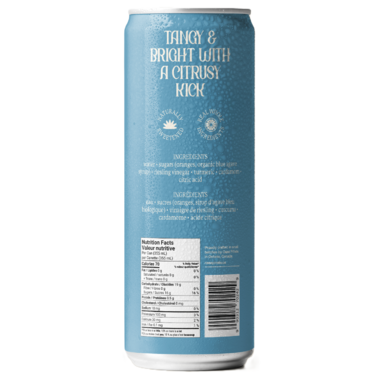 Sparkling water, Valencia orange juice, Niagara Riesling vinegar, organic agave