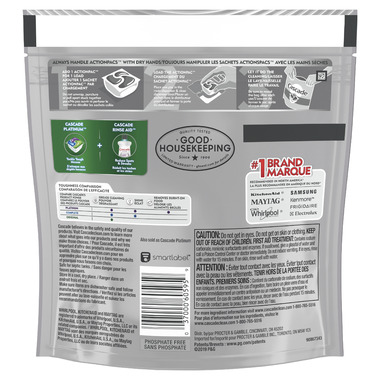 • Cascade Platinum ActionPacs clean 24-hour stuck-on food so well you can skip the pre-wash - saving up to 15 gallons of water per dishwasher load!