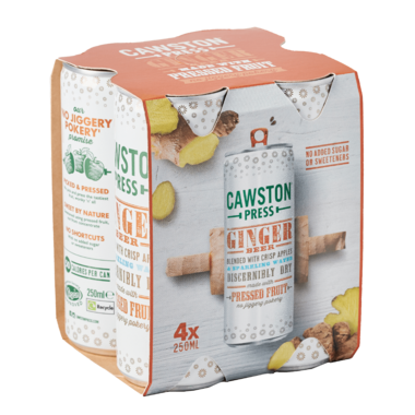 New slim cans in a convenient 4 x 250ml multipack. Authentic ginger beer pressed with crisp apples. Naturally spicy with sweet balance. Made from pressed fruit juice. Perfect mixer or standalone refreshment.