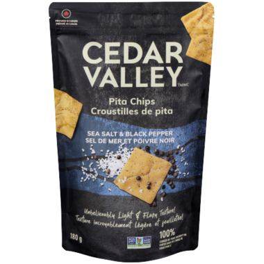 Cedar Valley Pita Chips  Sea Salt and Black Pepper are made in Canada with zero seed oils, 100% cooked in coconut oil.