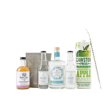 A curated assortment of non alcoholic essentials designed to make Dry January anything but dry. This non-alc cocktail kit includes a bottle of Ceder's Crisp, Cawston Press Cloudy Apple Juice, Split Tree Lavender Lemon Coridal, Walter Gregor Original Tonic and a stainless steel mixing spoon for your bar!