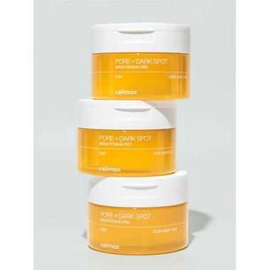 Celimax Pore+Dark Spot Brightening Pad is a dual-action toner pad designed to gently exfoliate and hydrate the skin, promoting a more radiant and even-toned complexion. Infused with brightening agents and a blend of acids, it helps reduce the appearance of dark spots and refine pores.