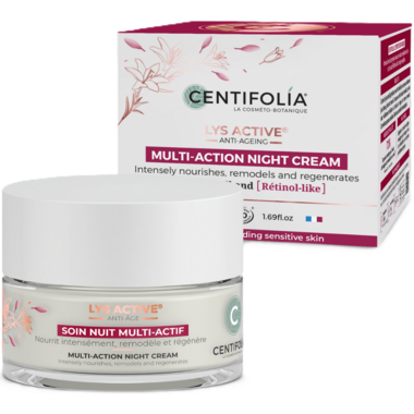 After a day of defending against external aggressions, the night is the ideal time for skin regeneration. Lys Active Multi-Action Night Cream has been specially formulated to stimulate skin cell renewal and deliver anti-ageing active ingredients at a time when they can be best assimilated. Night after night, skin is redensified, plumped and toned, and wrinkles are visibly reduced. Suitable for sensitive skin.