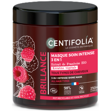 Suitable for all hair types, even curly, Centifolia 3-in-1 Intense Shine Mask illuminates and sublimates your hair from the very first use, thanks to its effective, ultra-gentle, biodegradable organic formula.