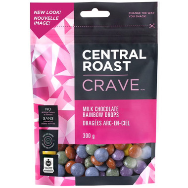 Central Roast Crave Milk Chocolate Rainbow Drops change the way you snack! When that chocolate craving hits, step away from the candy bar and look no further than CRAVE snacks. When taste meets satisfaction, isn't that sweet?