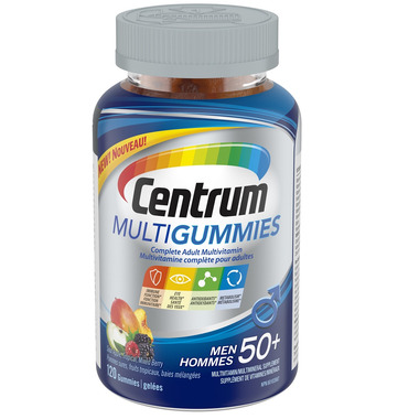 Formulated for adults over 50 looking for a tasty way to take their vitamins, Centrum MultiGummies Men 50+ multivitamins contain more B vitamins compared to Centrum MultiGummies Adult 50+.