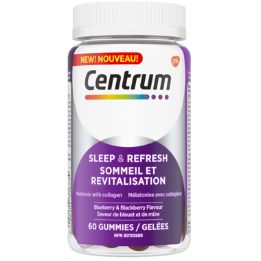 - Centrum Sleep & Refresh contains melatonin to help reduce the time it takes to fall asleep and reset the body’s sleep-wake cycle