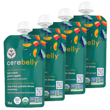 Bundle Includes: 4 x 128ml Cerebelly Organic Kale Sweet Potato Apple with Sunflower Seed Butter