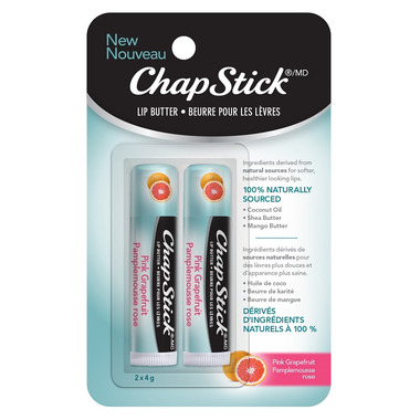 ChapStick Lip Butter Pink Grapefruit contains ingredients derived from natural sources for softer, healthier looking lips.