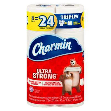 • Pack contains 8 Rolls (220 sheets per roll) of Charmin Ultra Strong Toilet Paper