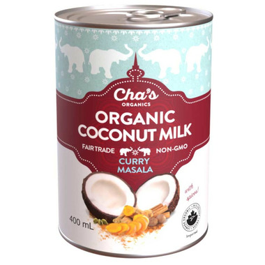 Cha's Organics Curry Masala Spiced Coconut Milk is creamy and spicy! Perfect for cooking when you want an extra kick or don't have a pantry of spices waiting at home.